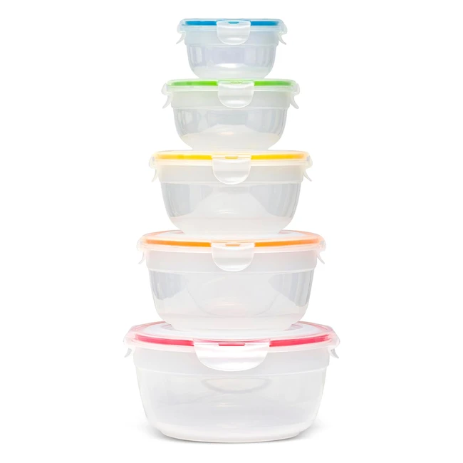 Lock & Lock Food Storage Containers - 5 Piece Nestable Round Containers with Lids - 4 Side Locks - Microwave & Dishwasher Safe - BPA Free