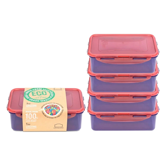 LocknLock Eco Rectangular Food Containers - Set of 5, BPA Free, Dishwasher Safe