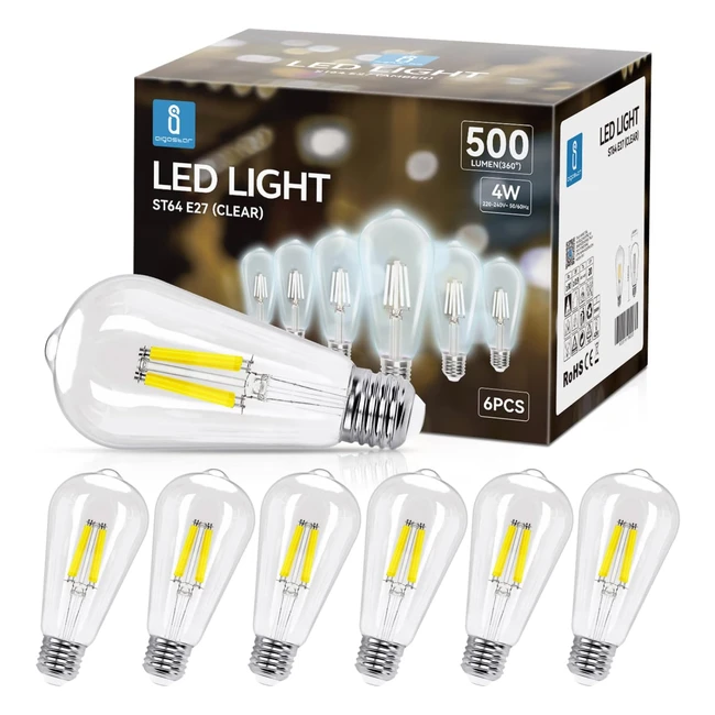 Lot de 6 Ampoules LED Filament E27 Blanc Froid 6500K 500lm 4W Equivalent 42W Incandescente