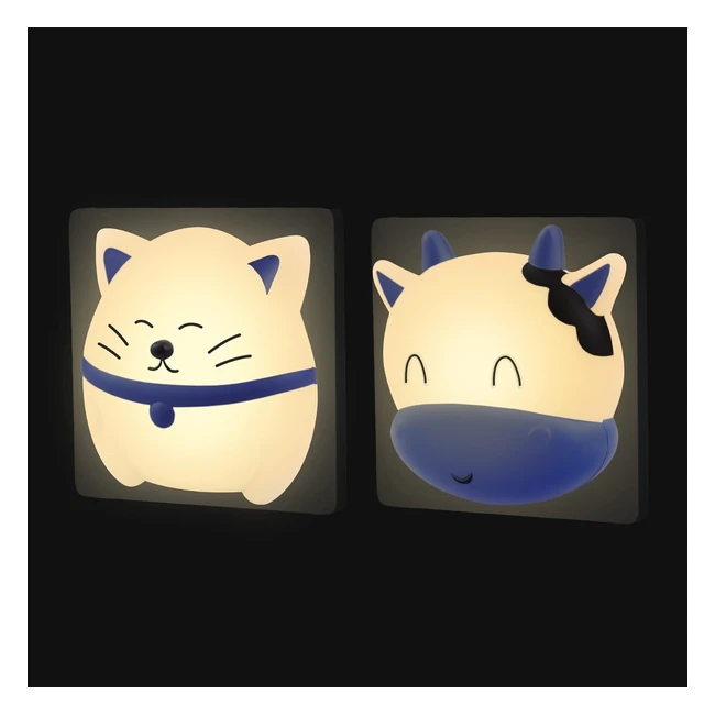 Luce Notturna Bambini da Presa con Sensore Crepuscolare - 2 Pezzi - Lucina Notte Neonati - Gatto e Mucca - Lampada Decorazioni Camera da Letto - Luci di Cortesia LED - Illuminazione Parete Scale