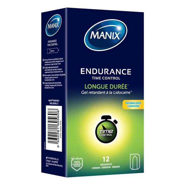 Manix Endurance Time Control - Bote de 12 préservatifs retardant pour homme - Réf. 123456 - Excitation prolongée