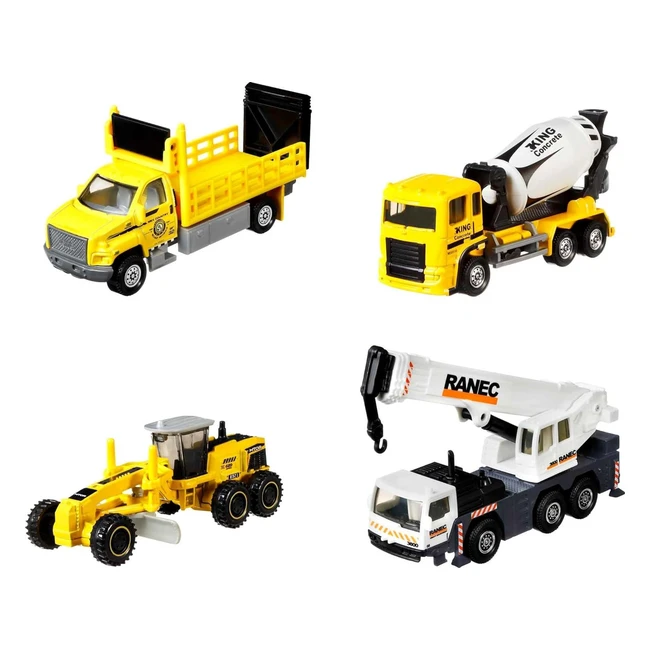 Matchbox Mezzi da Lavoro - Confezione da 4 Veicoli Grandi Dimensioni - Dettagli Autentici - Giocattolo Bambini 3 Anni HCC07