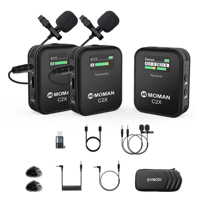 Microfono Lavalier Wireless Professionale Moman C2X 2.4GHz - Schermo TFT - DSLR Smartphone Tablet