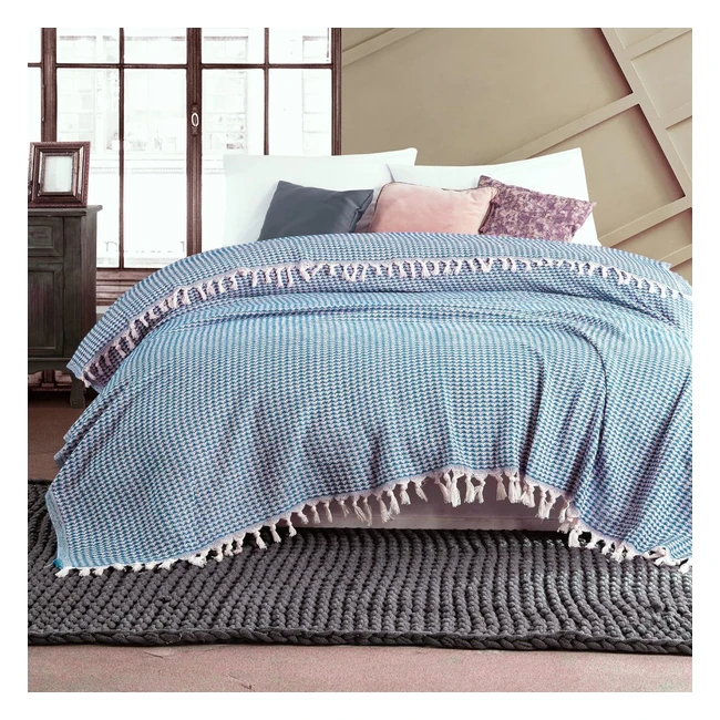 mixibaby Bettüberwurf Wendebettdecke Sofaüberwurf Couchdecke 200 x 230 cm Pyramide blau