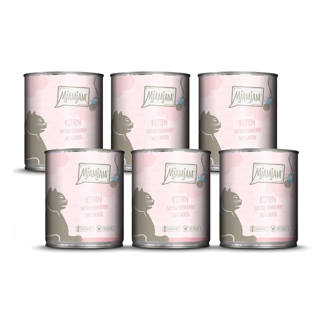 Mjamjam Premium Nassfutter für Katzen Kitten Saftiges Hühnchen mit Lachs 6er Pack