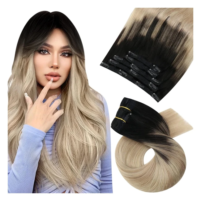 Moresoo Hair Extensions Clip In Real Hair Balayage 14 Inch - Natural Black to Ash Blonde - 5 Pieces