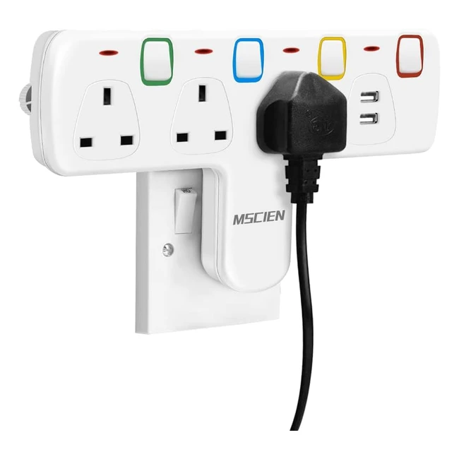 MSCIEN Plug Extension with USB Wall Socket 3 Way Adaptor 1 into 5