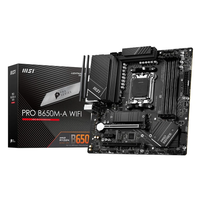 -30%Ryzen 7000 ready! The MSI Pro B650MA WiFi is a compact mATX motherboard with AMD B650 chipset. Featuring MSI Core Boost technology, passive AI cooling, DDR5 memory, dual PCIe 4.0 x16 slots, dual M.2 Gen4 x4 slots with Shield Frozr, WiFi 6E connectivity, and more. Upgrade now!