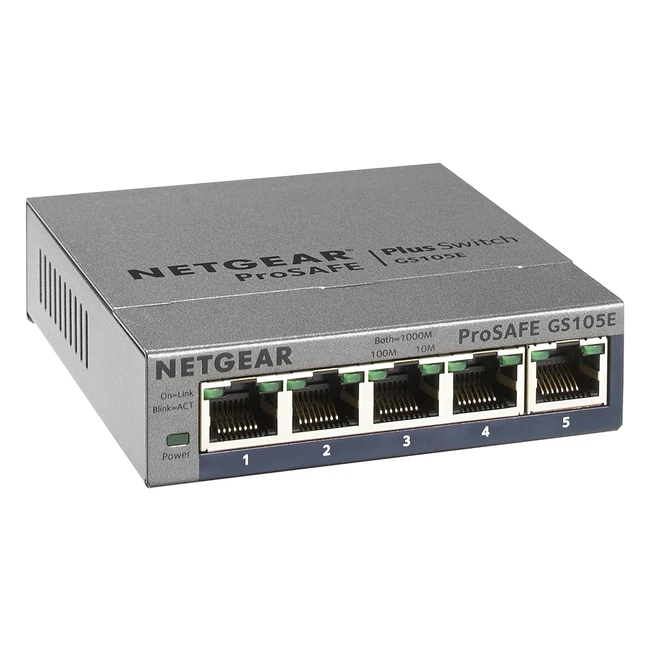 Netgear GS105E200PES 5Port Smart Managed Plus Gigabit Switch - Bis zu 2000 Mbps - Plug-and-Play - Konfigurierbar mit deutscher GUI - VLAN - QoS - DoS - IGMP Snooping - Lüfterloses Metallgehäuse