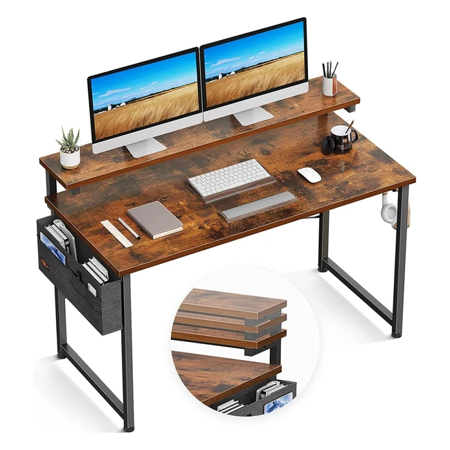 ODK Scrivania per Computer con Supporto Regolabile in Altezza 120x50x84cm - Tavolo da Scrivania Marrone