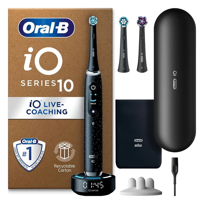 Oral B IO10 Electric Toothbrush Adults 1 Handle 3 Toothbrush Heads Charging Travel Case 7 Modes Cosmic Black