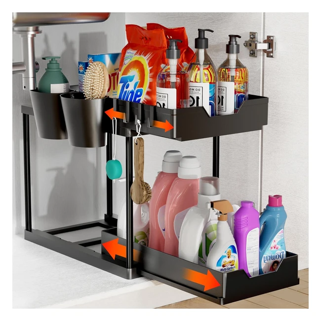 Organizador Bajo Fregadero Deslizable 2 Niveles - Gran Capacidad - 2 Cesta Colgante - 4 Ganchos - Multiusos