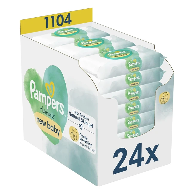 Pampers Harmonie New Baby 1104 Lingettes pour Bébé 24x46 - Sans Plastique, Sans Parfum - Certifié Oekotex - Protection de la Peau Délicate