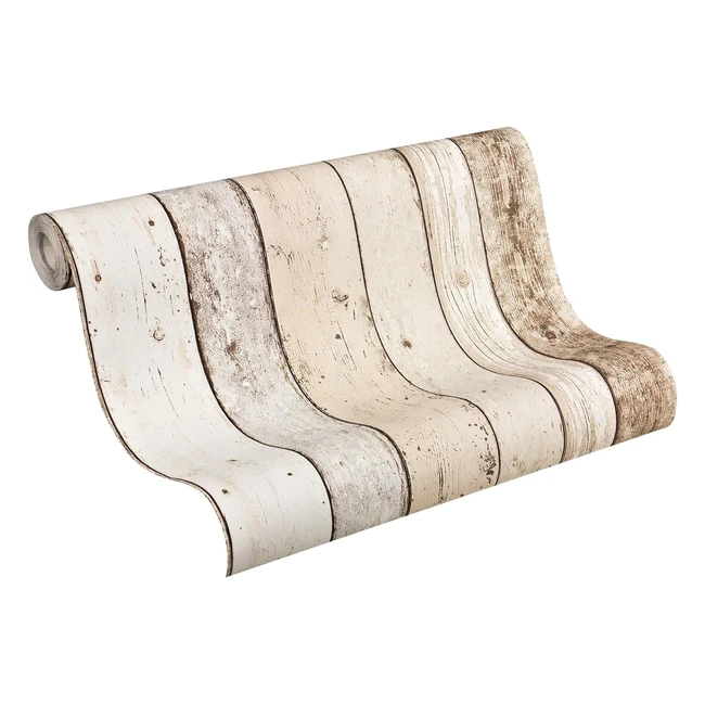 Papel Pintado Vinilo Diseño Madera Beige Marrón Blanco 1005m x 053m