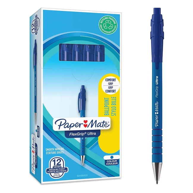Paper Mate Flexgrip Ultra Retractable Ballpoint Pens - Blue - 12 Count