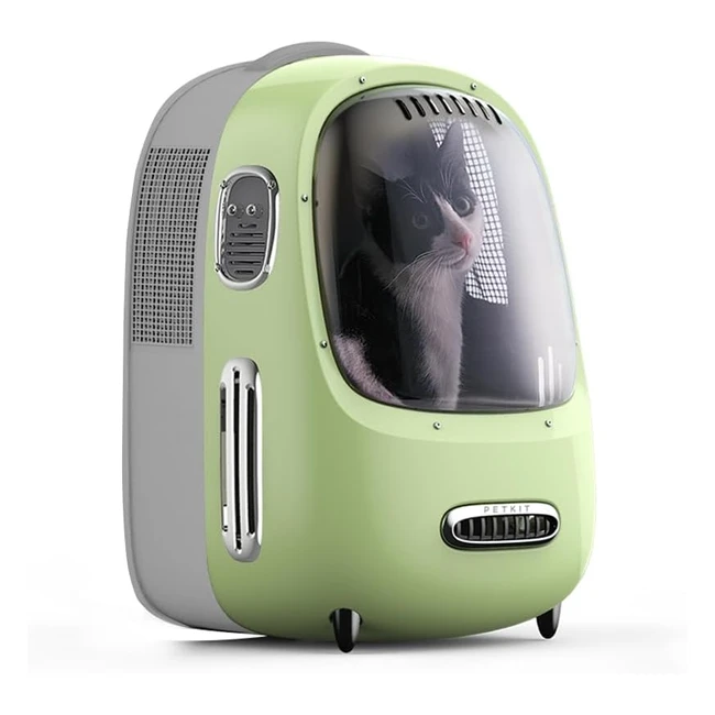 PETKIT Rucksäcke für Hunde Katzen mit eingebautem Ventilator und LED-Licht für geräumige Belüftung und geringes Gewicht Grün