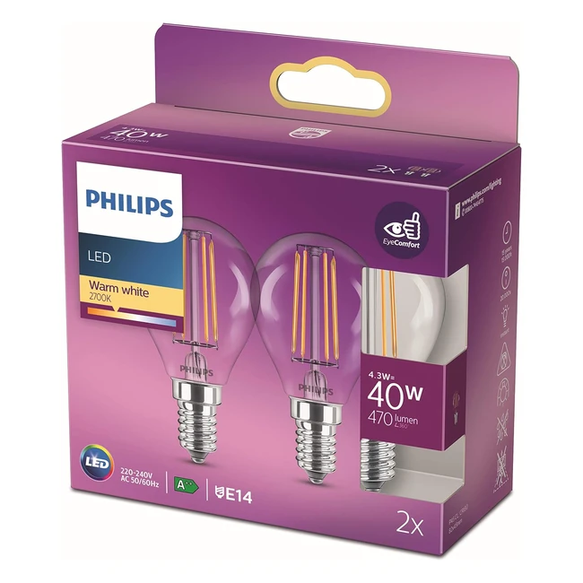 Philips Ampoule LED sphérique E14 40W blanc chaud lot de 2