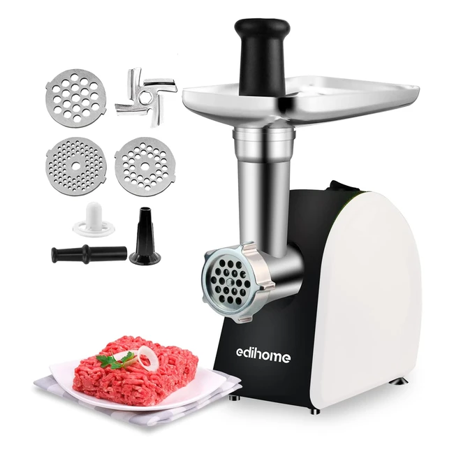 ¡Consigue la Picadora de Carne Edihome y pica carne en un instante! Con diseño trapezoidal y chasis reforzado para gran estabilidad. Incluye 3 tipos de cuchillas de acero inoxidable, empujador de alimentos, accesorio kubbe y boquilla para embutir salchichas. Controla la proporción de grasa en tus platos y ahorra espacio y tiempo en la elaboración. ¡Ideal para hamburguesas, kubbe, empanadas y más! No utilices con tendones, piel, carne congelada o huesos. Limpieza a mano. Garantía europea.
