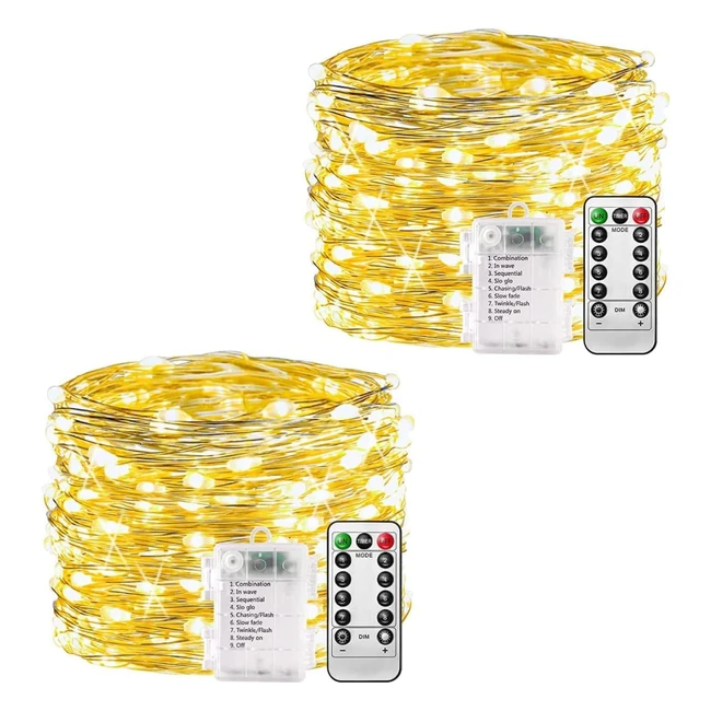 Plainshe Battery Fairy Lights - 2 Pack 10m 100 LED Copper Wire Fairy Lights