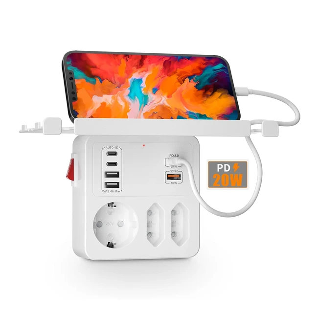 -5%Acquista subito la presa multipla con ricarica rapida PD20 20W e QC 18W! Fornisce una ricarica rapida e di qualità superiore per i tuoi dispositivi. Con 6 prese USB, supporto per cellulare e ripiano rimovibile. Ordinala ora e risparmia tempo!