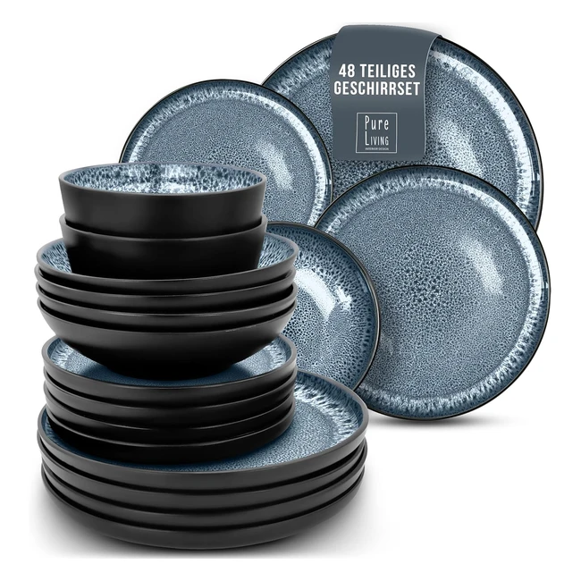 pure living ibiza Geschirrset für 12 Personen 48-teilig mediterranes Geschirrset spülmaschinen- und mikrowellengeeignet kratzfeste Schüssel- und Tellerset schwarz in rauchblau
