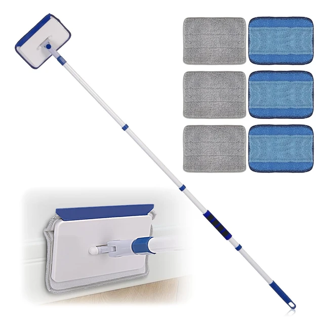 Qaestfy Skirting Board Cleaner Mop Tool with Long Handle 152cm - Baseboard Ceiling Shower Tub Tile Window Floor Kitchen - 6 Reusable Pads