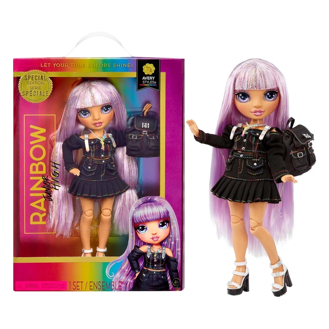 -20%Get ready to meet your favorite students before they became friends and followed their creative dreams at Rainbow High! Avery Styles is dressed in a stunning outfit with long purple rainbow shimmer hair, perfect for school. This fully articulated and posable doll comes with a soft vinyl backpack, necklace, and comb. Collect all the Rainbow Junior High fashion dolls now! #RainbowHigh #FashionDolls #AveryStyles #SchoolEssentials #CreativeDreams #ToyGift #KidsAges4to12 #PosableDoll #Collectibles #Fashionista