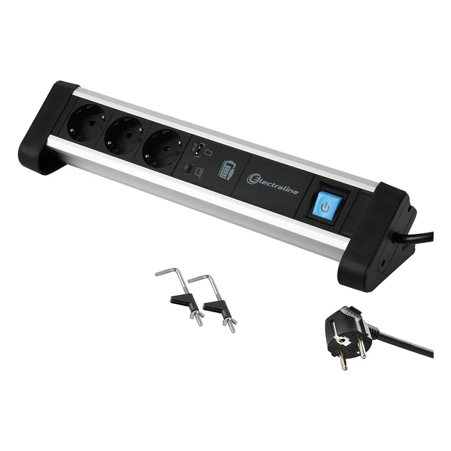-25%¡Aprovecha esta regleta de escritorio Electraline 62556 para tu estación de trabajo! Cuenta con 3 tomas Schuko, 2 puertos USB de carga rápida, 1 puerto USB tipo C Power Delivery de 60W. ¡No te quedes sin energía! ¡Compra ahora y carga tu computadora portátil de forma eficiente!