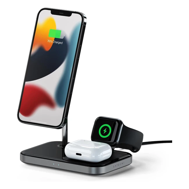 Satechi 3in1 Magnetic Wireless Charging Stand - iPhone 15 Pro Max, Apple Watch, AirPods Pro