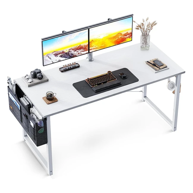 Scrivania per Computer ODK 120x50x74cm Bianca - Spaziosa e Stabile - Tasca di Stoccaggio e Gancio per Cuffie