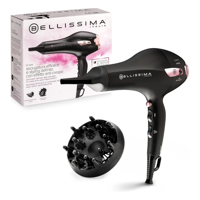 Secador de Pelo Imetec Bellissima P7 3200 - Motor Profesional 2100W - Ionizador - 2 Velocidades 3 Temperaturas - Difusor de Rizos