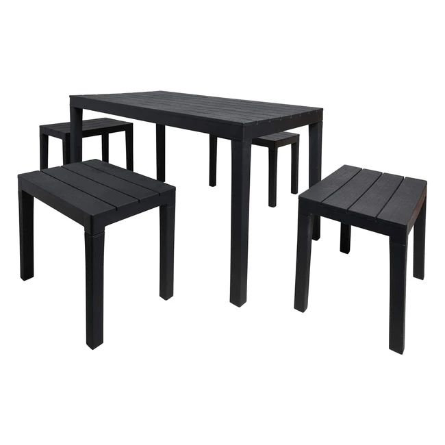 -19%Acquista subito il set da esterno dmora con tavolo rettangolare e 4 panche, perfetto per picnic all'aperto o per rilassarsi in giardino. Realizzato in plastica rinforzata con effetto doghe, resistente ai raggi solari e alla pioggia. Montaggio semplice e veloce. Ideale per arredare il tuo spazio outdoor o indoor. 100% made in Italy.