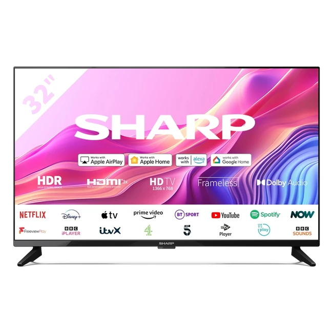Upgrade your viewing experience with the stunning HDR10 picture quality and sleek frameless design of the Sharp 32FD6K 32 inch Smart TV. Enjoy clearer contrast, distinct colors, and sharper details with HDR10 support. The Active Motion 400 display ensures exceptional clarity for sports and action scenes. Connect effortlessly with 3 HDMI ports and 1 USB port. Buy now and immerse yourself in a borderless picture experience!