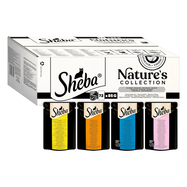 Sheba Natures Collection in Sauce Hochwertiges Katzennassfutter Feine Vielfalt MSC im Portionsbeutel 72 x 85g - Natürlich & Ausgewogen