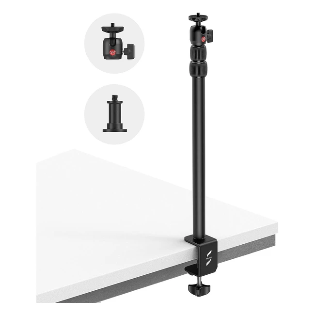 -27%Multifunction desk stand equipped with a 14 ball head and ring light adapter for DSLR cameras. Height adjustable with 3 sections extending poles. Angle adjustable via ball head for 360 panoramic rotation. Width adjustable for different thickness tables. Space-saving, lightweight, sturdy, and stable. Maximum load capacity of 3 kg. Perfect for beauty shooting, live streaming, interviews, video recording, Zoom meetings, YouTube, TikTok, and more.