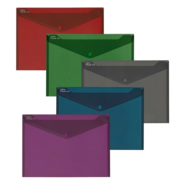 Snopake A4 Fusion Polyfile Popper Wallet - Assorted Pack of 5 (Ref 15643)