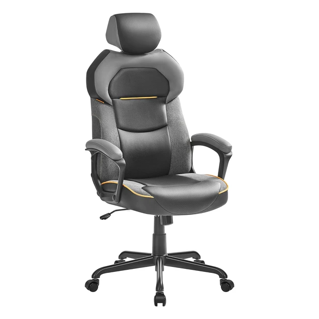 Songmics Gaming Chair OBG066B01 Schwarz 150kg PU Verstellbarer Kopfstütze Gepolsterte Armlehnen