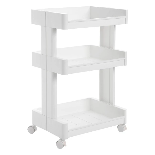 Songmics KSC01WT Polypropylen Mehrzweckwagen für Küche Bad oder Lagerung mit Rädern und 3 Ablagefächern Weiß