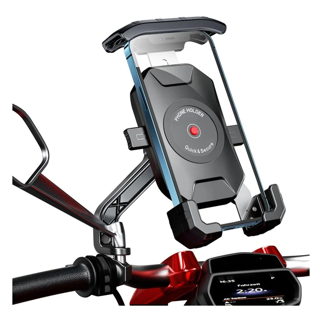 ¡Bloqueo 1 segundo! Libera el soporte móvil moto scooter de forma rápida y segura. ¡360 rotación libre! Ajusta el ángulo de visión para una mejor conducción. ¡Funciona sin bloqueo! Compatible con teléfonos de 4 a 7 pulgadas. ¡Alta estabilidad y durabilidad! Fácil de instalar y quitar. ¡Haz de tu teléfono una cámara deportiva en segundos!
