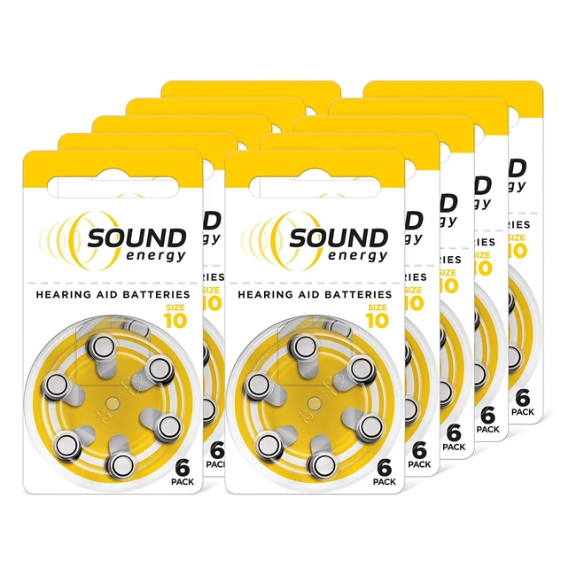 Sound Energy Hearing Aid Batteries Size 10 - Pack of 60 - Long-Lasting Power