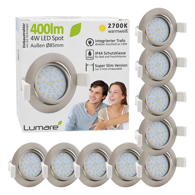 -39%Spot de plafond Lumare 4W de haute qualité, lumière chaude sans scintillement, économie d'énergie, interchangeable, raccordement direct à 230V, dimensions ultraplates, durée de vie de 25 000 heures, angle de rayonnement de 120, IRC de 80, garantie 3 ans.