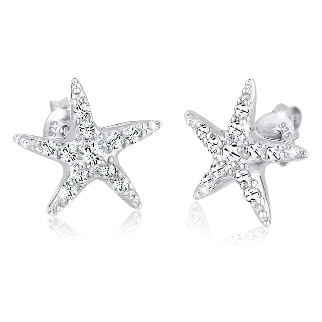 Stunning 925 Sterling Silver Starfish Beach Stud Earrings with Crystals - Elli Earrings
