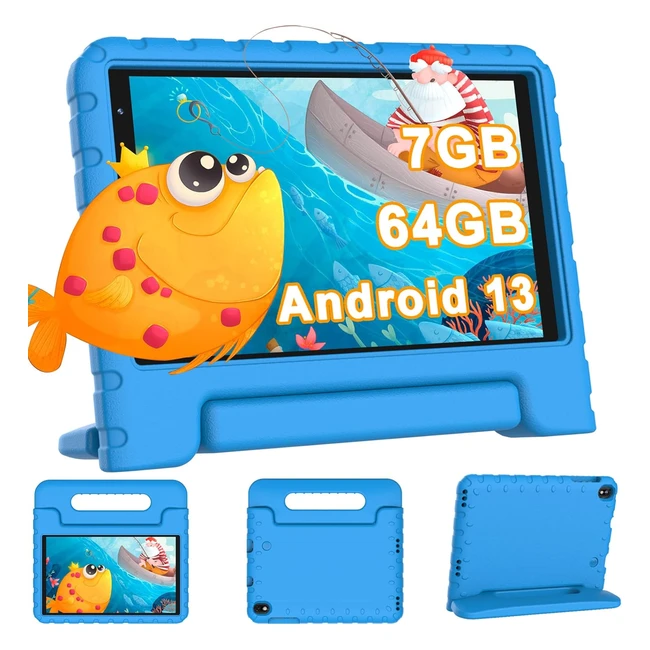 Tablette Enfants Yestel avec Wifi 6 - Android 13 - 7Go RAM - 64Go ROM - 1TB TF - Éducative 8 Pouces HD - Contrôle Parental - Étui Antichoc Eva Bleu