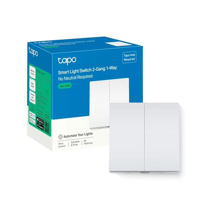 Tapo Smart Light Switch 2 Gang 1 Way Voice Control Away Mode No Neutral Needed S220