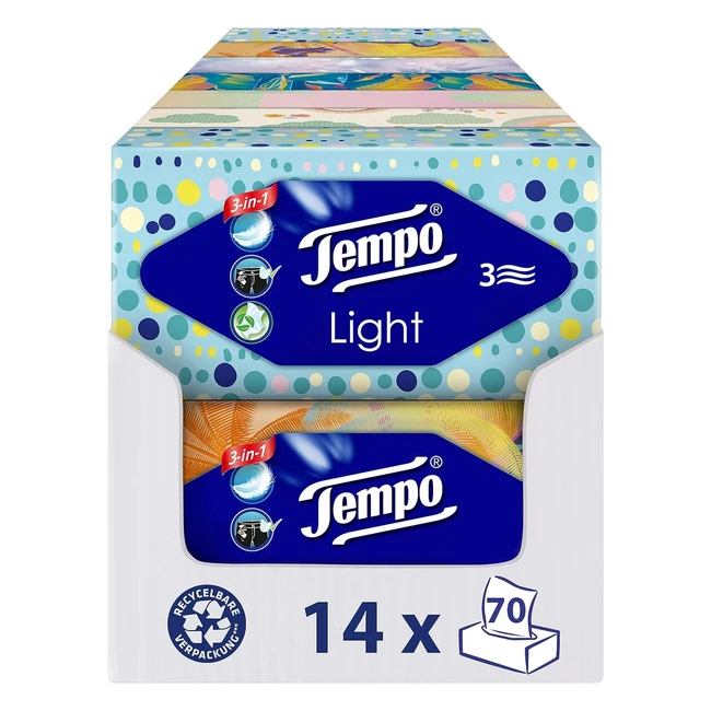 Tempo Light Box Taschentücher Mega Pack 14 Boxen 70 Tücher pro Box Weiche Papiertaschentücher Waschbar