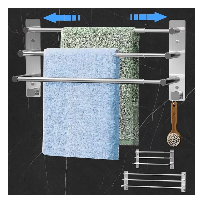 Toallero Baño Sin Taladro Extensible 37-70cm Acero Inoxidable 3 Barras con Ganchos
