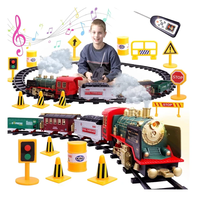 -5%Offre limite! Ensemble de train miniature motoris avec locomotives vapeur, wagons charbon, 8 voies courbes, 6 voies droites, tlcommande, bouteille d'eau, panneaux signalisation. Librez votre crativit! Facile assembler, lumire LED, sons relalistes, fume de chemine. Cadeau idal pour garons et filles. Livr dans une boite exquise. Ne manquez pas cette opportunit unique!