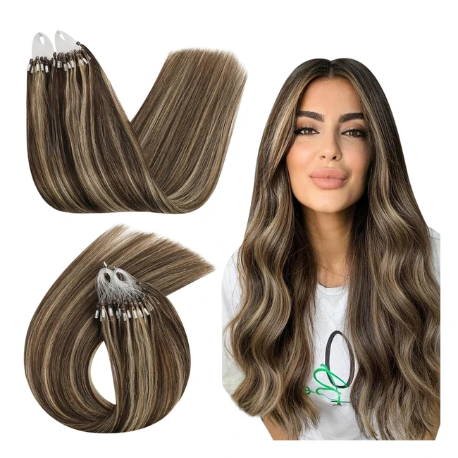 UGEAT Micro Bonding Extensions Echthaar P427 Dunkelbraun zu Karamellblond Gestreift 40cm 50g Haarverlängerung