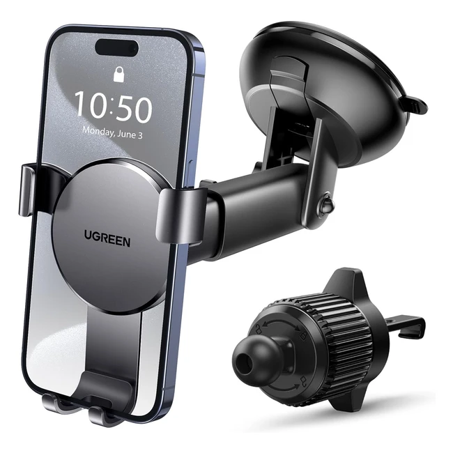 UGREEN Car Phone Holder Mount Gravity Windscreen Dashboard Suction Cup Air Vent Auto Clamp Release Mobile Phone Holder for Car Window Cradle Compatible iPhone 15 14 13 12 11 Pro Max XS XR Black