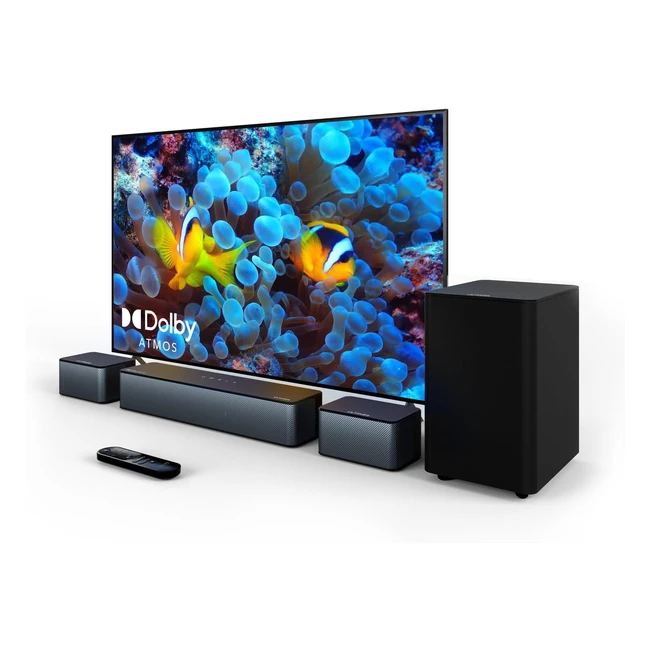 Experience the ultimate 3D surround sound with the Ultima 51 Dolby Atmos Soundbar. Immerse yourself in a threedimensional soundscape that moves freely around you, creating a sense of direction, space, and depth. This true 51 immersive surround sound system features two adjustable surround speakers and a separate subwoofer for crystal-clear dialogue and breathtaking audio effects. With advanced HDMI audio transmission and compatibility with Dolby Atmos, enjoy lossless sound quality and a superior audio experience. Upgrade your home theater with the Poseidon D60 Series 2023 Model.